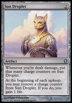 Example #1: Sun Droplet and Well of Lost Dreams, which respectively function as life preserver and draw engine in several Life Gain decks:
